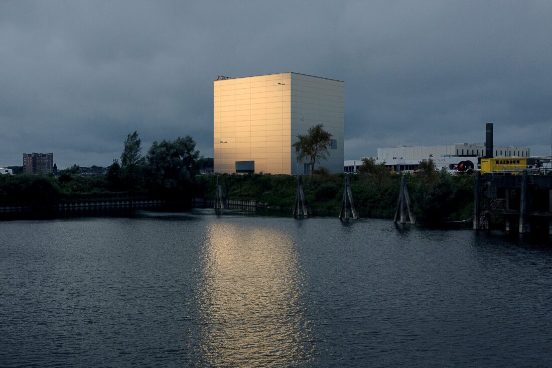 kunstdepot samenkomen. Het ontwerp is geïnspireerd op een monoliet – een grote,
