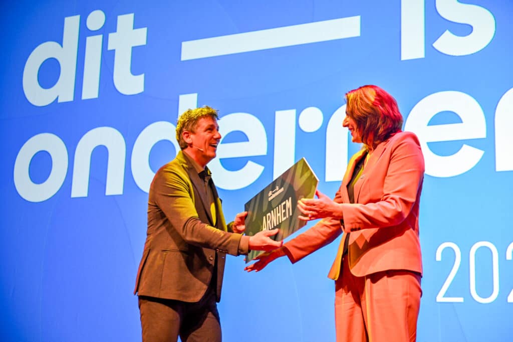 Arnhem is in 2026 de MKB Stad van het Jaar! Tijdens het MKB Festival in Zwolle nam wethouder Nermina Kundić het stokje symbolisch over van voorzitter Jacco Vonhof van MKB-Nederland, door symbolisch het bordje ‘Zwolle’ door ‘Arnhem’ te vervangen. In 2026 worden veel landelijke MKB-activiteiten in Arnhem georganiseerd, met als hoogtepunt het MKB Jaarcongres op 18 juni. Zet die datum vast in je agenda! Meer weten? Lees meer op www.mkbondernemersfestival.nl.