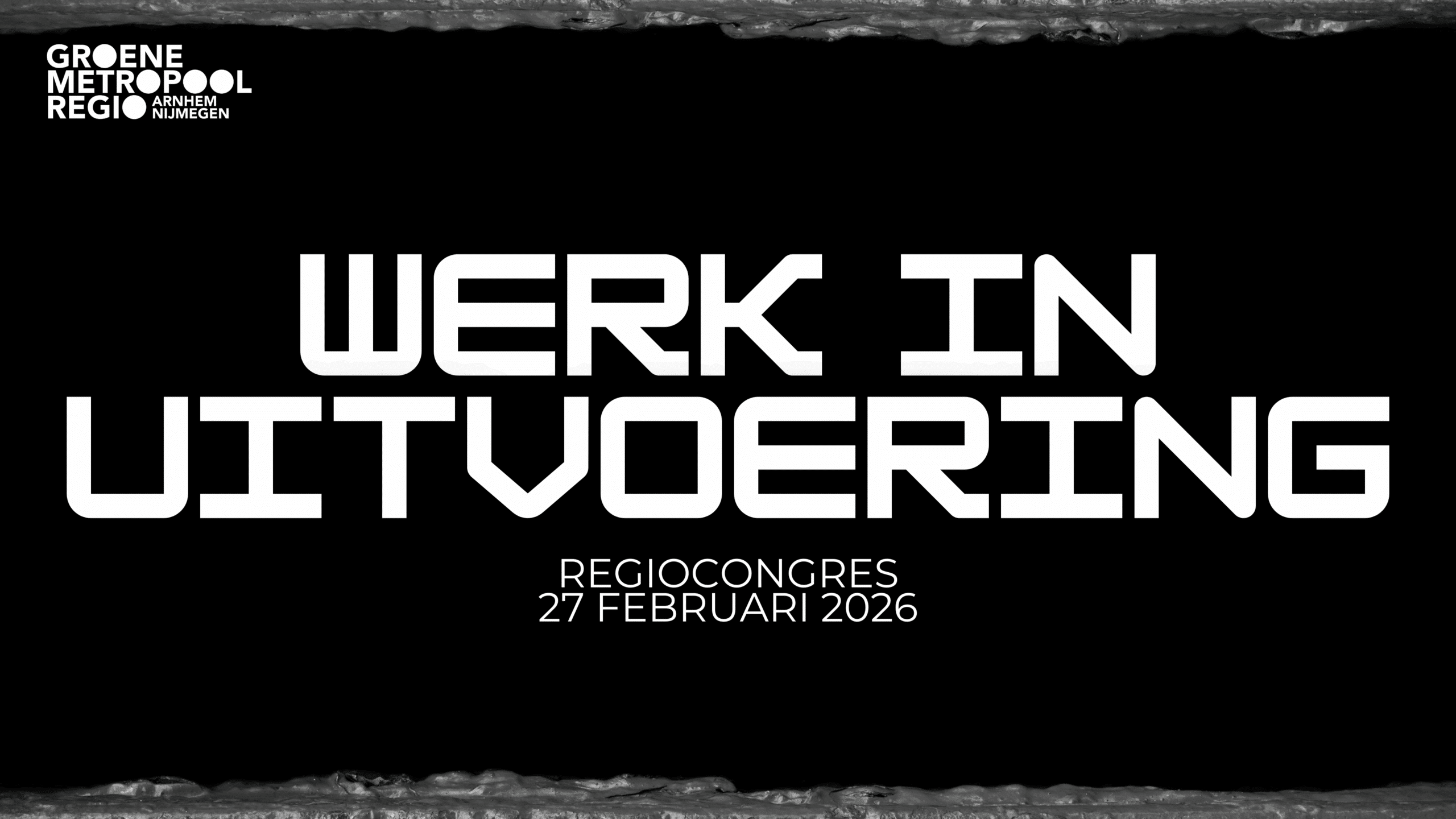 Na vijf jaar plannen en strategieën is het tijd voor actie. Op vrijdagmiddag 27 februari 2026 organiseert de Groene Metropoolregio Arnhem-Nijmegen de vijfde editie van hetregiocongres. Dit keer is het thema Werk in uitvoering. Tijdens het regiocongres zie je hoe ambities werkelijkheid worden: van economie tot mobiliteit, van circulariteit tot woningbouw en recreatie. Verwacht een energieke middag vol inspiratie, scherpe inzichten en ontmoetingen met mensen die bouwen aan de regio. De locatie is de Papierfabriek in Nijmegen.